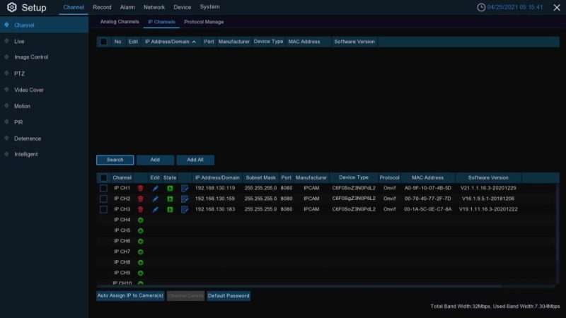 Add IP camera (1319 1329 8204 8208) to DVR (D3505)
