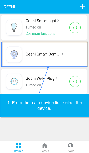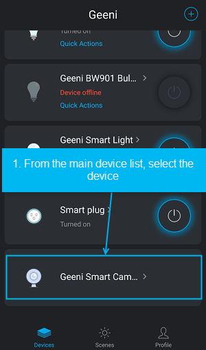 1. Open the Geeni app and from the main devices list select Geeni Camera.