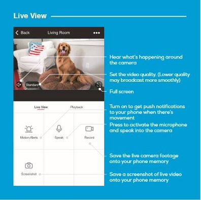 Without a Micro SD card (optional, sold separately), the smart Wi-Fi camera can show live camera video, save screenshots or videos of the camera stream to your phone for later, and record still snapshots of motion alerts when notifications are turned on.