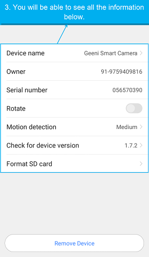 To see serial number and version of Geeni camera, follow the below instructions:
