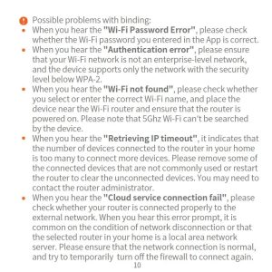 - When you hear the “Authentication error”, please ensure that your Wi-Fi network is not an enterprise-level network, and the device supports only the network with the security level below WPA-2.