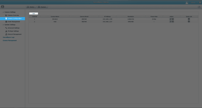 Fig6. Start the Surveillance App from the QNAP web interface and click on the Add button.