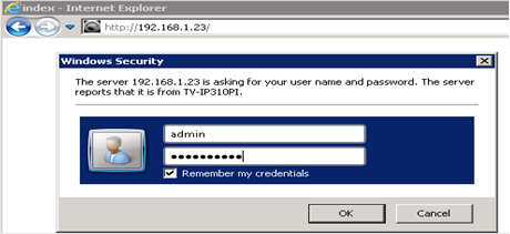 Now we have found the camera’s IP address. The first step is to log on to the camera. Enter the camera’s username and password, click Ok. It will go to the following screen: