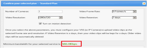 The parameters to enter are dependent on your subscription level. For the TRENDnet camera, the lowest resolution is 720P, so your plan should not be lower than 1280×720. If you ordered 5 frames/s, you can select 4 in the Frame Rate drop-down since this camera does not support 5 FPS.