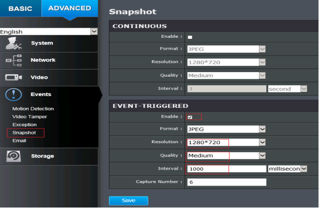 Step 5. Configure Events (Motion Detection and Snapshots)